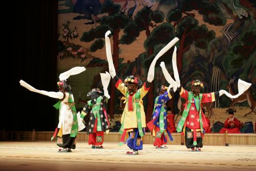 ÇѹÎÁ·ÀÇ Èï°ú ½Å¸íÀÌ »ì¾Æ ¼û½¬´Â Çѱ¹ ¿¹¼úÀÇ Áø¼ö¸¦ ÃÖ°íÀÇ ±â·®¸¦ °®Ãá ±¹¸³±¹¾Ç¿ø 60¿©¸íÀÇ ´Ü¿øµéÀÌ À½¾Ç°ú ÃãÀ¸·Î ¼±º¸ÀÌ°Ô µÈ´Ù.