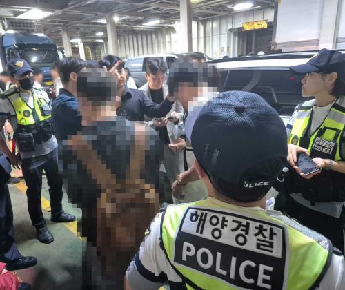 ÀÔÇ× Àå¼Ò¿¡¼ ´ë±âÇÏ´ø ÇØ°æÀº Çϼ± ÁßÀÎ ½Â°´À» ´ë»óÀ¸·Î °Ë¹®°Ë»öÀ» ½Ç½ÃÇÏ¿´°í, 5Åæ±Þ ȹ°Å¾Â÷¿¡ ¼û¾î Á¦ÁÖµµ ÀÌÅ»À» ½ÃµµÇÑ ¹ÐÀÔ±¹ ÀÇ½É ¿Ü±¹ÀÎ 5¸í(30´ë ¿©2, ³²1 / 20´ë ³²2 / º£Æ®³²)À» °Ë°ÅÇß´Ù.