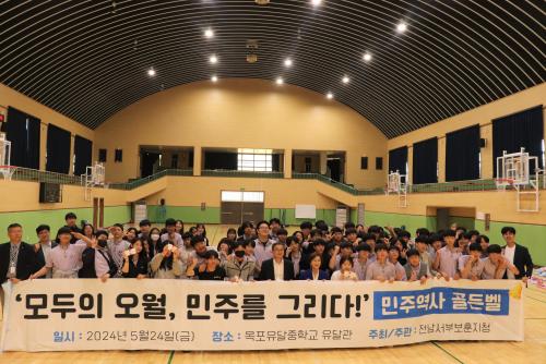 ¡¸¹ÎÁÖ¿ª»ç °ñµçº§¡¹Çà»ç´Â ¸ñÆ÷½Ã ¼ÒÀç ÁßÇб³ 3°³±³¿¡¼ ÁøÇàµÇ¾ú´Âµ¥, ÇлýµéÀº ÄûÁî À̺¥Æ®¿¡ µé¶°ÀÖ´Ù°¡µµ ¹®Á¦ ÃâÁ¦°¡ ½ÃÀÛµÇÀÚ ¸Å ȸ¸¶´Ù ÁøÁöÇÏ°Ô ÀÓÇÏ´Â ¸ð½ÀÀ» º¸¿©ÁÖ¾úÀ¸¸ç, ¹Ì·¡¼¼´ëÀÎ ÇлýµéÀÌ 5¡¤18¹ÎÁÖȿÀÇ ÀÇÀÇ¿Í °¡Ä¡¸¦ ¿Ã¹Ù¸£°Ô ÀÌÇØÇÏ°í ¿ì¸®³ª¶ó ¹ÎÁÖÁÖÀÇ ¿ª»ç¿¡ ÀںνÉÀ» °¡Áú ¼ö ÀÖ´Â °è±â¸¦ ¸¶·ÃÇß´Ù.