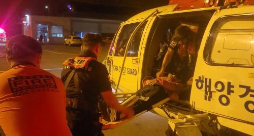 Çï±â¿¡ µ¿½ÂÇÑ ÇØ¾ç°æÂû ±¸±Þ´ë¿ø µîÀº Áö¼ÓÀûÀ¸·Î ȯÀÚÀÇ »óŸ¦ üũÇÏ´Â ÇÑÆí À°»óÀÇ ¼Ò¹æ°úµµ ¿¬¶ôÀ» ÃëÇß´Ù. ¼ÇØÇذæ Çï±â´Â ÀÌ·úÀ¸·ÎºÎÅÍ 30¿©ºÐ ÈÄ ¿©¼ö°øÇ׿¡ µµÂøÇß°í, ȯÀÚ¸¦ 119¿¡ ÀΰèÇØ ¹«»çÈ÷ º´¿øÁø·á¸¦ ¹ÞÀ» ¼ö ÀÖµµ·Ï Çß´Ù.