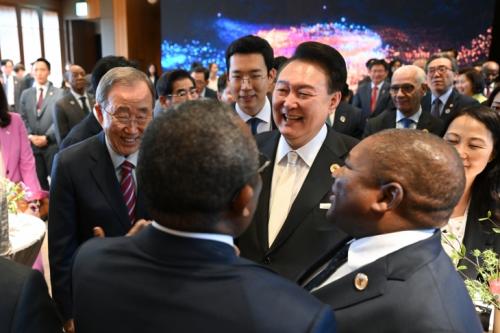 À± ´ëÅë·ÉÀº ȸ´ã¿¡¼ ¡°´ëÇѹα¹Àº ¾ÆÇÁ¸®Ä«¿Í ¹Ý¼¼±â°¡ ³Ñ´Â ±â°£ µ¿¾È ²ÙÁØÈ÷ ±³·ù¿Í Çù·ÂÀ» ÁõÁøÇØ ¿Ô´Ù¡±¸ç ¡°À̹ø ÇÑ¡¤¾ÆÇÁ¸®Ä« Á¤»óȸÀǸ¦ °è±â·Î µ¿¹Ý¼ºÀåÀ» À§ÇØ ´õ¿í Èû²¯ ¶Ù¸é¼ ¿¡³ÊÁö¿Í ÀÎÇÁ¶ó, ÇÙ½É ±¤¹°, ³ó¾÷ µî ´Ù¾çÇÑ ºÐ¾ß¿¡¼ »óÈ£ È£ÇýÀûÀÎ ¸ÂÃãÇü Çù·ÂÀ» °ÈÇØ ³ª°¡°íÀÚ ÇÑ´Ù¡±°í ¸»Çß´Ù.
