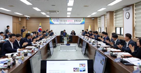 À̳¯ °£´ãȸ´Â ¹ÚÁö¿ø ±¹È¸ÀÇ¿ø°ú ±èÈñ¼ö Áøµµ±º¼ö Àü³²µµÀÇȸ ±èÀÎÁ¤ ÀÇ¿ø, Áøµµ±ºÀÇȸ À念¿ì ÀÇÀå°ú ±ºÀÇ¿ø µî 40¿© ¸íÀÌ Âü¼®ÇØ ±¹È¸ÀÇ¿øÀ» Æ÷ÇÔÇÑ ÀÇ¿øµé°úÀÇ ±ºÁ¤ Çù·Âü°è¸¦ ±¸ÃàÇϰí Áøµµ±º Çö¾È»ç¾÷°ú 2025³â ±¹°í¿¹»ê È®º¸ ¹æ¾È¿¡ ´ëÇØ ³íÀÇÇß´Ù.