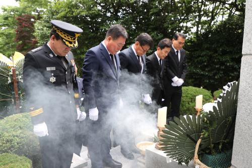 Ãß³ä½Ä¿¡´Â ±è»ê ±º¼ö¸¦ ºñ·ÔÇÏ¿©, ¼»ï¼® ±¹È¸ÀÇ¿ø, ÀÓµ¿Çö ¹«¾È±ºÀÇȸ ºÎÀÇÀå, Àü³²µµ¡¤¹«¾È±ºÀÇȸ ÀÇ¿ø, º¸ÈÆ´ÜüÀå, º¸Èư¡Á·, ±â°ü¡¤»çȸ´ÜüÀå, °ø¹«¿ø µî 250¿© ¸íÀÌ Âü¼®ÇÑ °¡¿îµ¥ °æ°ÇÇÏ°í ¾ö¼÷ÇÑ ºÐÀ§±â ¼Ó¿¡¼ ¼ø±¹¼±¿ÀÇ ¶æÀ» ±â¸®°í Ã߸ðÇß´Ù.