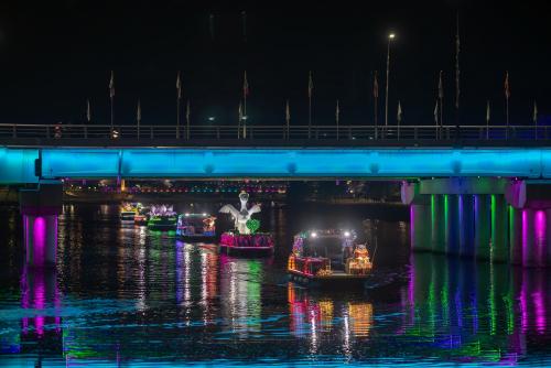 ¼ö»ó ÆÛ·¹À̵å´Â ÃÑ 8ôÀÇ ¼±¹Ú¿¡ ¼øÃµ¸¸½ÀÁö¿Í ±¹°¡Á¤¿øÀ» »ó¡Çϴ ¯¶×¾î, Ä¥°Ô, ÈæµÎ·ç¹Ì µîÀÇ Ä³¸¯ÅÍ Á¶Çü¹°·Î ¿¬ÃâÇÏ°í ¾ß°£¿¡ ÇüÇü»ö»ö Á¶¸íÀ» ´õÇØ ¹«¸® Áö¾î À̵¿ÇÏ´Â ¸ð½ÀÀº µ¿Ãµº¯ ¾ß°£°æ°ü°ú ¾î¿ì·¯Á® »ö´Ù¸¥ º¼°Å¸®¸¦ Á¦°øÇÑ´Ù.