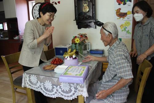 ¿À´Ã »ý½ÅÀ» ¸ÂÀº½Å Á¶¡ÛÇü´Ô(91¼¼)Àº 1953³â Çеµº´À¸·Î Áö¿ø ÀÔ´ëÇÏ¿© 6.25ÀüÀï¿¡ ÂüÀüÇϼÌÀ¸¸ç, ¹«¾È¿¡ Ȧ·Î °ÅÁÖÇϽô ºÐÀ¸·Î ¡°À۳⿡ ¹è¿ìÀÚ¸¦ Çϴ÷Πº¸³»°í Ȧ·Î ÀûÀûÇߴµ¥ ÀÌ·¸°Ô ã¾Æ¿Í ÁÖ´Ï ±â»Ú´Ù. ¡±¸ç °í¸¶¿òÀ» Ç¥Çß´Ù. ¶ÇÇÑ ÂüÀü ´ç½ÃÀÇ »ý»ýÇÑ À̾߱⸦ µé·ÁÁÖ½Ã¸é¼ ´«½Ã¿ïÀ» ºÓÈ÷±âµµ Çϼ̴Ù.