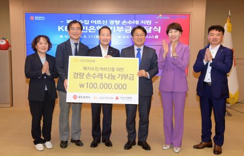 ±¤ÁÖ±¤¿ª½Ã(½ÃÀå °±âÁ¤)´Â 17ÀÏ ¿ÀÈÄ ½Ãû ºñÁî´Ï½º·ë¿¡¼ ¡®KB±¹¹ÎÀºÇà ±âºÎ±Ý Àü´Þ½Ä¡¯À» ¿¾ú´Ù.