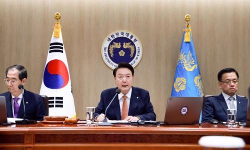 [¼¿ï]À±¼®¿ ´ëÅë·ÉÀÌ 18ÀÏ ´ëÅë·É½Ç¿¡¼ ¿¸° ±¹¹«È¸ÀÇ¿¡¼ ¹ß¾ðÇϰí ÀÖ´Ù. À± ´ëÅë·ÉÀº À̳¯ ¡°¿ì¸®³ª¶ó ¾î´À °÷µµ ÁöÁø ¾ÈÀüÁö´ë°¡ ¾Æ´Ï´Ù. ÇàÁ¤¾ÈÀüºÎ¸¦ ºñ·ÔÇÑ °ü°è ±â°üÀº Àü±¹ÀûÀÎ ´ÜÃþ Á¶»ç¸¦ Æ÷ÇÔÇØ ´Ù°¢ÀûÀÎ ´ëÃ¥À» ¼µÑ·¯ ¸¶·ÃÇØ ´Þ¶ó¡±°í ´çºÎÇß´Ù. ¿ÞÂʺÎÅÍ ÇÑ´ö¼ö ±¹¹«ÃѸ®, À± ´ëÅë·É, ÃÖ»ó¸ñ ºÎÃѸ® °â ±âȹÀçÁ¤ºÎ Àå°ü.