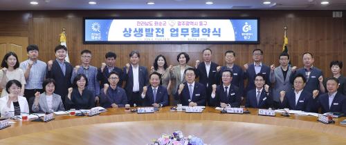 À̳¯ Çù¾à½Ä¿¡´Â ÀÓÅà ±¸Ã»Àå°ú ±¸º¹±Ô ±º¼ö¸¦ ºñ·ÔÇÑ ¾ç ±â°ü °ü°èÀÚµéÀÌ Âü¼®ÇÑ °¡¿îµ¥ ¾ç ÁöÀÚü °£ Çö¾ÈÀ» °øÀ¯Çϰí, »ó»ý¹ßÀüÀ» À§ÇÑ Áö¿ª Çö¾È ÇØ°á¿¡ ÇÔ²² ÈûÀ» ¸ðÀ¸±â·Î ¾à¼ÓÇß´Ù.
