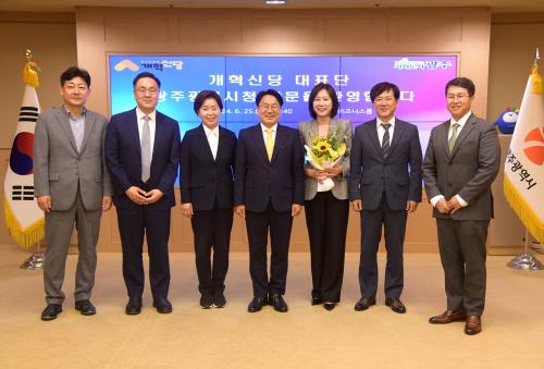 °±âÁ¤ ±¤ÁÖ½ÃÀåÀº ¡°½Ãû ¹æ¹®À» ȯ¿µÇÑ´Ù. °³Çõ½Å´çÀº ±¤ÁÖ¸¦ À§ÇØ ÇÔ²²ÇÒ ¼ö ÀÖ´Â ¾öû³ ¿¡³ÊÁö¸¦ °¡Áø Á¤´çÀÌ´Ù¡±¸ç ¡°À̾߱âÇϽŠ5¡¤18Á¤½Å Çå¹ýÀü¹® ¼ö·Ï, ÀÏÀÚ¸®, ´©¸± °ø°£ µîÀº ±¤ÁÖÀÇ Áß¿äÇÑ °úÁ¦À̰í, ÇÔ²² ¼ÕÀâ¾ÆÁֽðڴٴ ±× ÀÚü°¡ °í¸¶¿î ÀÏÀÌ´Ù.