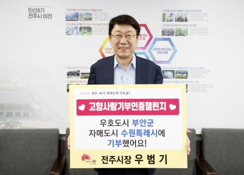 ¿ì¹ü±â ÀüÁÖ½ÃÀåÀº ¡°¿ëÀÎÆ¯·Ê½Ã ÀÌ»óÀÏ ½ÃÀå´Ô ´öºÐ¿¡ °íÇâ»ç¶û±âºÎ ÀÎÁõ 縰Áö¿¡ Âü¿©ÇÒ ¼ö ÀÖ°Ô µÅ ±â»Ú´Ù¡±¸é¼ ¡°À̹ø 縰Áö¸¦ ÅëÇØ ÀüÁÖ½Ã¿Í ¿ëÀÎÆ¯·Ê½Ã, ºÎ¾È±º, ¼ö¿øÆ¯·Ê½Ã¿¡ ¸¹Àº ±âºÎ°¡ À̾îÁö±æ ¹Ù¶õ´Ù¡±°í ¸»Çß´Ù.