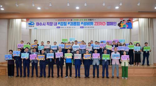 ½Ã¿¡ µû¸£¸é À̳¯ ½Ãû ´ëȸÀǽǿ¡¼ Á¤±â¸í ¿©¼ö½ÃÀå°ú ±èµ¿Çö °ø¹«¿ø ³ëµ¿Á¶ÇÕÀ§¿øÀå, 5±Þ ÀÌ»ó °£ºÎ °ø¹«¿ø µî 50¿© ¸íÀÌ Âü¿©ÇÑ °¡¿îµ¥ ¡®Á÷Àå ³» 3´ë ºñÀ§ÇàÀ§ ZERO¡¯ Ä·ÆäÀÎÀ» ÆîÃÆ´Ù.