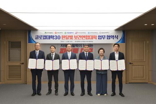 Çù¾à½Ä¿¡´Â ±³À°ºÎÀÇ ¡®±Û·ÎÄôëÇÐ30¡¯ °ø¸ð¿¡ Àü±¹ À¯ÀÏ Ãʱ¤¿ª ¿¬Çո𵨠À¯ÇüÀ¸·Î ½ÅûÇÑ ±¤ÁÖº¸°Ç´ëÇб³, ´ë±¸º¸°Ç´ëÇб³, ´ëÀüº¸°Ç´ëÇб³ ÃÑÀå°ú ±¤ÁÖ½Ã‧´ë±¸½Ã‧´ëÀü½Ã °ü°èÀÚµéÀÌ Âü¼®Çß´Ù.