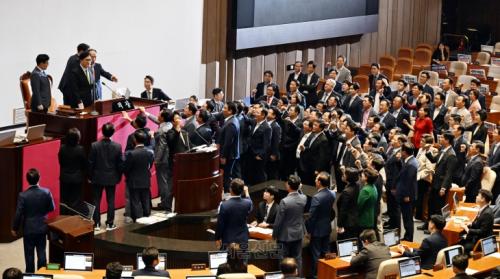 22´ë ±¹È¸¿¡¼µµ ¡®¹ý¾È °Çà󸮡æ°ÅºÎ±Ç Çà»ç¡æÀçÇ¥°á¡¯ÀÇ ¾Ç¼øÈ¯ÀÌ ¹Ýº¹µÇ´Â ¼ÀÀÌ´Ù. ä»óº´Æ¯°Ë¹ý Åë°ú ÈÄ ³ëÁ¾¸é ¹ÎÁÖ´ç ¿ø³»´ëº¯ÀÎÀº ¡°´ëÅë·É¿¡°Ô °æ°íÇÑ´Ù.