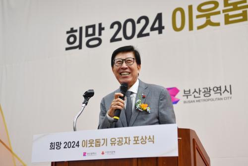 [ºÎ»ê]ºÎ»ê½Ã(½ÃÀå ¹ÚÇüÁØ)´Â 9ÀÏ ¿ÀÈÄ 1½Ã 30ºÐ ½Ãû ´ëȸÀǽǿ¡¼ ¡¸Èñ¸Á2024 ÀÌ¿ôµ½±â À¯°øÀÚ Æ÷»ó½Ä¡¹°¡ ¿¸°´Ù°í ¹àÇû´Ù.