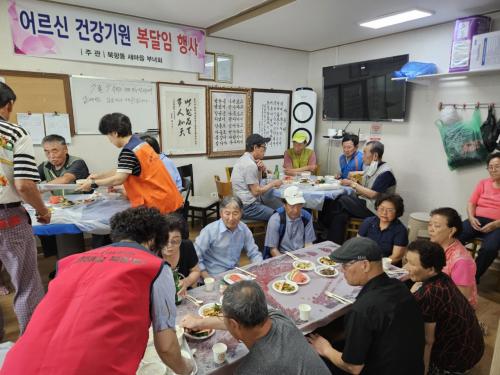 ÇÑÆí, Á¶Á¤Èñ ºÏÇ×µ¿ÀåÀº ¡°¹«´õ¿î ¿©¸§³¯ ¾î¸£½Åµé¿¡°Ô ¿µ¾ç °¡µæÇÑ ´ßÁ×À» ÁغñÇØ ÁֽŠ»õ¸¶À»ºÎ³àȸ ȸ¿øµé ¹× ÈÄ¿øÇØ ÁֽŠÀÚ»ýÁ¶Á÷ ȸ¿øµé²² °¨»çµå¸°´Ù.¡±¸é¼ ¡°¾î¸£½ÅµéÀÌ ¿Ã¿©¸§À» °Ç°ÇÏ°Ô ³¯ ¼ö ÀÖµµ·Ï ÇàÁ¤º¹Áö¼¾ÅÍ¿¡¼µµ ÃÖ¼±À» ´ÙÇØ ³ë·ÂÇϰڴ١±°í ¸»Çß´Ù.