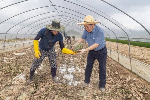 À̳¯ Á¤ ½ÃÀå°ú Á÷¿øµéÀº ¿ëµ¿¸éÀÇ ¼ö¹Ú ºñ´ÒÇϿ콺 ³óÀåÀ» ¹æ¹®ÇØ º¹±¸¿¡ ÈûÀ» º¸ÅÉ´Ù. ´õ¿î ³¯¾¾¿¡µµ ¾Æ¶û°÷ÇÏÁö ¾Ê°í ħ¼öµÈ ¼ö¹Ú ÀÛ¹°À» °È¾î³»°í ºñ´Ò°ú ÀÚÀç µîÀ» Á¤¸®Çϸç ÀϼÕÀÌ ºÎÁ·ÇØ ¸·¸·ÇÑ ÁÖ¹ÎÀÇ ½Ã¸§À» ´Þ·¨´Ù.