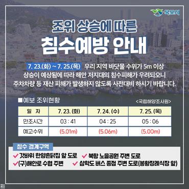 ÇÑÆí, ¸ñÆ÷½Ã´Â ¹Ù´å¹° ¼öÀ§°¡ Á¶¼®Ç¥»ó Á¶°í 4.90mÀÌ»óÀÏ °æ¿ì ÇØ¼ö À§ÇèÀÏ·Î ÁöÁ¤ÇØ ½Ã¹ÎµéÀÇ Àç»êÇÇÇØ°¡ ¹ß»ýÇÏÁö ¾Êµµ·Ï ħ¼öÇÇÇØ ¿¹¹æ¿¡ Àû±Ø ´ëóÇϰí ÀÖ´Ù.