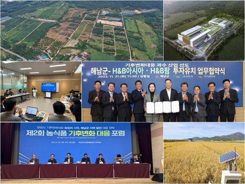 ¸íÇö°ü ÇØ³²±º¼ö´Â¡°³ó½Äǰ±âÈĺ¯È¼¾ÅÍ¿Í ÇØ³²±º ³ó¾÷¿¬±¸´ÜÁö¸¦ ÅëÇØ ±¹°¡Àû °úÁ¦ÀÎ ±âÈĺ¯È´ëÀÀÀÇ ³ó¾÷ºÐ¾ß ¿¬±¸¿Í ±â¼úº¸±Þ ¼Óµµ¸¦ ³ô¿© ¿ì¸®³ª¶ó ³ó¾÷ÀÇ ´ëÀüȯÀ» ÀÌ·ï³»°Ú´Ù¡±¸ç¡°±âȸ¹ßÀüƯ±¸¸¦ ÅëÇÑ Ã·´ÜÀü·«»ê¾÷°ú ÇÔ²² ¹Ì·¡»ê¾÷À¸·Î¼ ³ó¾î¾÷ÀÇ Áö¼Ó°¡´ÉÇÑ ¹ßÀüÀ» ¾ç³¯°³·Î ÇØ³²ÀÇ ¹Ì·¡ ¸Ô°Å¸®°¡ µÉ Àå±â ¼ºÀ嵿·ÂÀ» À°¼ºÇØ ³ª°¡°Ú´Ù¡±°í ¹àÇû´Ù.