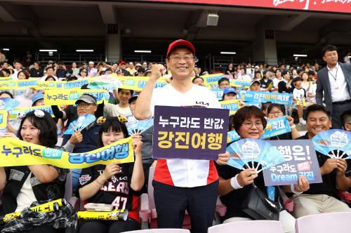 À̳¯ °æ±âÀå¿¡¼´Â °Áø¿ø ±º¼ö¸¦ ºñ·ÔÇØ ¼¼ø¼± °Áø±ºÀÇȸÀÇÀå µî °øÁ÷ÀÚ 200¿© ¸íÀÌ Âü¿©ÇØ, °æ±âÀåÀ» ãÀº ¾ß±¸ÆÒµé¿¡°Ô ÇϸÆÃàÁ¦¿Í ¹Ý°ª °Áø¿©Çà ¾È³» È«º¸¹°À» ¹èºÎÇϰí, ûÁ¤ °Áø¿¡¼ »ý»êÇÑ ½ÒÀ» ³ª´²ÁÖ´Â µî ¹«´õÀ§ ¼Ó ¡®°Áø ¾Ë¸®±â¡¯¿¡ ±¸½½¶¡À» Èê·È´Ù.