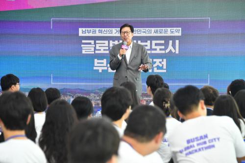 ¹ÚÇüÁØ ½ÃÀåÀº ¡°'±Û·Î¹ú Çãºêµµ½Ã ºÎ»ê'À» À§ÇØ Ã»³âµéÀÇ Ã¢ÀÇÀûÀÎ »ý°¢À» µè°í ¼ÒÅëÇÏ´Â °ÍÀÌ ¹«¾ùº¸´Ù Áß¿äÇÏ´Ù¡±¶ó¸ç, ¡°¾ÕÀ¸·Îµµ û³âÀ» ºñ·ÔÇÑ ½Ã¹ÎµéÀÌ ºÎ»êÀÇ ¹Ì·¡¸¦ ±¸»óÇϰí, Á¤Ã¥ ¾ÆÀ̵ð¾î¸¦ Á¦¾ÈÇÒ ¼ö ÀÖ´Â ´Ù¾çÇÑ ¼ÒÅëÀÇ ÀåÀ» ¸¶·ÃÇØ ³ª°¡°Ú´Ù¡±¶ó°í ¹àÇû´Ù.
