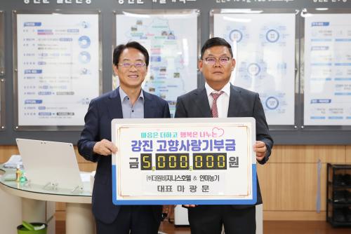 Áö³ÇØ 1¹é¸¸ ¿ø ±âŹ¿¡ ÀÌ¾î ¿ÃÇØµµ 5¹é¸¸ ¿øÀ» ±âŹÇÑ ¸¶±¤¹® ´ëÇ¥´Â ÀåÈï °ü»êÀ¾ Ãâ½ÅÀ¸·Î, °Áø¿¡¼ ±â¾÷ü¸¦ ¿î¿µÇÏ¸é¼ °Áø¿¡ ¾ÖÁ¤À» °®°Ô µÇ¾ú°í, °Áø ±º¹ÎÀåÇÐÀç´Ü, ÀÌ¿ôµ½±â ¼º±Ý µî ²ÙÁØÇÑ ±âºÎ¸¦ ÅëÇØ Áö¿ª »çȸ¿¡ ¼±ÇÑ ¿µÇâ·ÂÀ» ÀüÆÄÇØ ¿Ô´Ù.