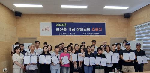 °î¼º±º³ó¾÷±â¼ú¼¾ÅÍ °ü°èÀÚ´Â ¡°À̹ø ±³À°Àº ³ó»ê¹° °¡°ø »óǰ°³¹ß ÀýÂ÷¿Í ½Äǰ ¾ÈÀü°ü¸® µî ½Äǰ °¡°ø ½Ã Çʼö·Î ¾Ë¾Æ¾ß ÇÏ´Â Àü¹®ÀûÀÎ °úÁ¤À¸·Î ÁøÇàµÆ´Ù¡±¸ç, ¡°¼ö·á»ýµéÀÌ ³ó½Äǰ °¡°ø¿¡ ´ëÇÑ Àü¹®¼ºÀ» °ÈÇÏ°í ¿ì¸® ±º ³ó»ê¹° °¡°øÃ¢¾÷ÀÇ ¼±µÎ ÁÖÀÚ°¡ µÅ ³ó¿Ü¼Òµæ âÃâÀ» ÀÌ·ç±æ ±â´ëÇÑ´Ù¡±°í ¸»Çß´Ù.