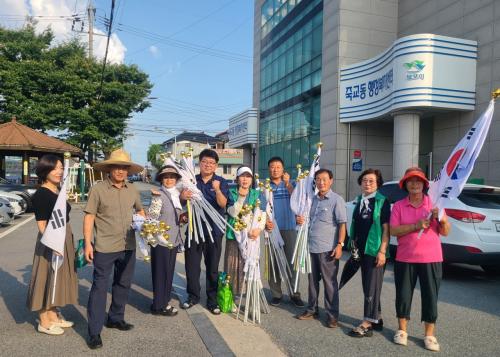 À̳¯ ȸ¿øµéÀº Á×±³µ¿ űر⠸ð¹ü°Å¸®ÀÎ ºÏÇ×»ç°Å¸®~Á×±³µ¿ »ï°Å¸® ¾à 500m ±¸°£ »ó°¡¿Í ÁÖÅÿ¡ űرâ 100¿©°³¸¦ °Ô¾çÇÏ¸é¼ Áֹε鿡°Ô ¿Ã¹Ù¸¥ ±¹±â°Ô¾ç ¹æ¹ýÀ» ¼³¸íÇϰí ÁýÁý¸¶´Ù űر⠴ޱ⿡ µ¿ÂüÇØ ÁÙ °ÍÀ» ´çºÎÇß´Ù.