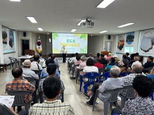 À̹ø ±³À°Àº ¾¦ Àç¹è±â¼ú ±³À°À» ÃßÁøÇØ´Þ¶ó´Â Á¶µµ¸é ÁֹεéÀÇ °ÇÀÇ»çÇ×À» ¹Ý¿µÇÏ¿© ¸¶·ÃµÈ ±³À°À¸·Î, ¾à 60¸íÀÇ ÁÖ¹ÎÀÌ Âü¼®ÇÏ¿© ¾¦ Àç¹èȯ°æ¿¡ µû¸¥ Àç¹è¹æ¹ý°ú º´ÇØÃæ °ü¸®¹ý µî Á¶µµ ¾¦ ǰÁúÇâ»ó°ú »ý»ê¼º Áõ´ë¸¦ À§ÇÑ Àç¹è±â¼ú°ú ºñ°áÀ» ½ÀµæÇÏ¿´´Ù.