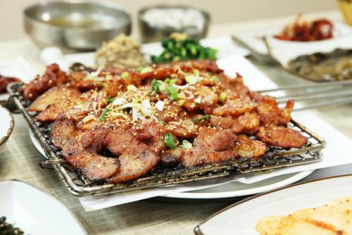¼®°îÈæµÅÁö ¼®¼è±¸ÀÌ(°î¼º2Ú«)´Â Âü½¡¿¡ Á÷È·Î ±¸¿ö³» ºÎµå·¯¿î À°Áú°ú ÀÔ¸ÀÀ» ´ç±â´Â ÈÆÁ¦ ÇâÀÌ ÀÏǰÀÌ´Ù. °íÃßÀå°ú ¸Å½Ç, ²Ü µîÀÇ ¾ç³äÀ» »ç¿ëÇØ µÅÁö°í±âÀÇ ´©¸°³»¸¦ Àâ¾Æ³»¼ ¸ÀÀÌ ±ò²ûÇÏ´Ù.