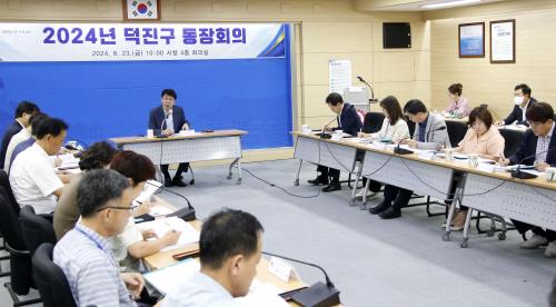 ¿ì¹ü±â ½ÃÀåÀº 23ÀÏ ½Ãû 4Ãþ ȸÀǽǿ¡¼ ´öÁø±¸ 16°³ µ¿ Áֹμ¾ÅÍ µ¿ÀåµéÀ» ´ë»óÀ¸·Î ½ÃÁ¤ ÁÖ¿ä Çö¾È »ç¾÷¿¡ ´ëÇØ ¼³¸íÇÏ°í °¢ µ¿º° ÁÖ¿ä »ç¾÷À» ûÃëÇÏ´Â µ¿Àå ȸÀǸ¦ °¡Á³´Ù.