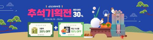 20% ÇÒÀÎ ÄíÆùÀ» ȸ¿ø 1Àδç 3¸Å¾¿ »ç¿ëÇÒ ¼ö ÀÖÀ¸¸ç, ÃÖ´ë 6¸¸ ¿ø±îÁö ÇÒÀιÞÀ» ¼ö ÀÖ´Ù. ¶ÇÇÑ, Ãß¼® ¸íÀý Á¦¼ö¿ëǰ Áغñ¸¦ À§ÇÏ¿© ¸¹Àº ȸ¿øÀÌ ±¸¸ÅÇÒ °ÍÀ¸·Î ¿¹»óµÇ´Â °úÀϰú ¼ö»ê¹°Àº ÃÖ´ë 30%±îÁö ÇÒÀιÞÀ» ¼ö ÀÖ´Ù.