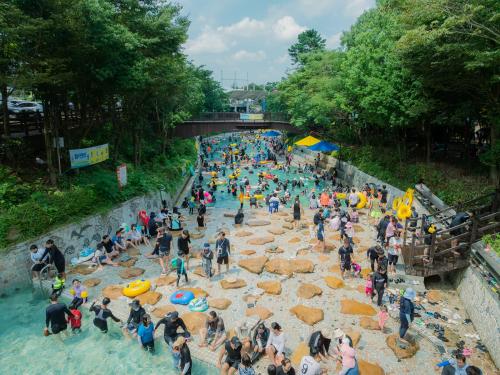 ¹°³îÀÌÀå¿¡ ¸¶·ÃµÈ ÀÚ¿¬°è°îÇü ¾ß¿Ü Ç®Àå°ú ½Ç³»¹°³îÀÌÀå 8°³¼Ò, ¹°´ëÆ÷, Æ©ºê ½½¶óÀ̵å, ¿¡¾î¹Ù¿î½º µî ´Ù¾çÇÑ ½Ã¼³Àº ³²³à³ë¼Ò ´©±¸³ª ¾ÈÀüÇÏ°Ô ÇǼ¸¦ Áñ±â´Â ÀåÀ̾ú´Ù.