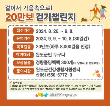 縰Áö´Â 9¿ù 9ÀϺÎÅÍ 10¿ù 8ÀϱîÁö 30Àϰ£ ÁøÇàµÇ¸ç, ±â°£ ³» 20¸¸ º¸ °È±â(ÇÏ·ç 8,000º¸ ÀÎÁ¤)¸¦ ´Þ¼ºÇÏ¸é µÈ´Ù.