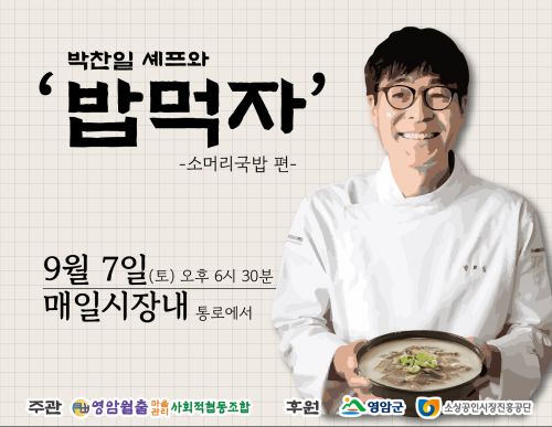 ¿µ¾Ï±º(±º¼ö ¿ì½ÂÈñ)ÀÌ 7ÀÏ ¿ÀÈÄ 6½Ã 30ºÐºÎÅÍ ¿µ¾ÏÀ¾ ¸ÅÀϽÃÀå °Å¸®¿¡¼ ´ëÇ¥ ¸Ô°Å¸® °³¹ß ¿ä¸® ÄܼƮ ¡®¹ÚÂùÀÏ ¼ÎÇÁ¿Í ¹ä¸ÔÀÚ¡¯¸¦ °³ÃÖÇÑ´Ù.
