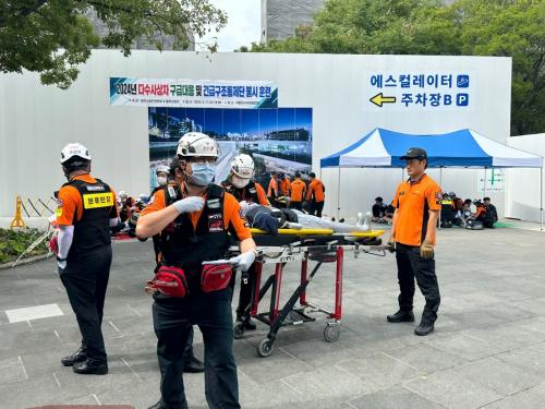 ÈÆ·ÃÀº ±¹¸³¾Æ½Ã¾Æ¹®ÈÀü´ç ÁöÇÏÁÖÂ÷Àå¿¡¼ Àü±âÂ÷ ÈÀç°¡ ¹ß»ýÇÑ »óȲÀ» °¡Á¤ÇØ ÈÀç ¹ß»ý, ÁÖÂ÷Àå ³» ±³Åë»ç°í, ´ëÇÇ Áß Åë·Î ¹ÐÁý»ç°í µî¿¡ µû¸¥ ¡ãÈ»ó¡¤Áú½Ä ȯÀÚ ¡ãÃâÇ÷¡¤°ñÀý µî ¿Ü»ó ȯÀÚ ¡ã±ò¸²¿¡ ÀÇÇÑ ¾ÐÂø ºÎ»óÀÚ µî 50¸íÀÇ ´Ù¼ö »ç»óÀÚ°¡ ¹ß»ýÇÑ »óȲ¿¡ ´ëÀÀÇÑ ÈÆ·ÃÀ¸·Î ÁøÇàµÆ´Ù.