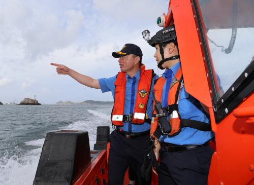 À̸íÁØ Ã»ÀåÀº À̳¯ ¿ÀÈÄ 14½Ã, ÇØ°æ Çï±âÆíÀ¸·Î ¼ÇØ ¸Õ ¹Ù´Ù¿¡ ´ëÇÑ Ç×°ø¼øÂû°ú ÇÔ²² °æºñÁßÀÎ 3015ÇÔÀ» ¹æ¹®ÇØ Ãß¼® ¿¬ÈÞ¿¡µµ ½¬Áö ¸øÇÏ°í ±Ù¹«ÇÏ°Ô µÉ ÇØ¾ç°æÂû°üµéÀ» À§·ÎÇÏ´Â ÇÑÆí, ÇØ¾ç ÁÖ±Ç ¼öÈ£¿Í ¼±¹ÚµéÀÇ ¾ÈÀü°ü¸®¿¡ ÃÖ¼±À» ´ÙÇØÁÙ °ÍÀ» ´çºÎÇß´Ù.