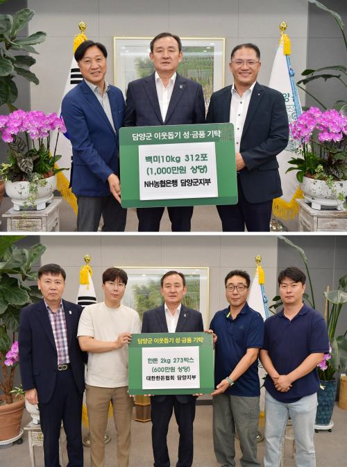´ã¾ç±º¿¡ Àü´ÞµÈ ÁÖ¿ä ÈÄ¿ø ¼ºÇ°Àº ¡ã¢ßÆÄ¹ÖÇϿ콺(´ëÇ¥ °Áر¸) ·ÑÄÉÀÌÅ© 100»óÀÚ(200¸¸ ¿ø »ó´ç) ¡ã´ëÇÑÇѵ·Çùȸ ´ã¾ç±ºÁöºÎ(ÁöºÎÀå °º´±¸) Çѵ· 2kg 273»óÀÚ(600¸¸ ¿ø »ó´ç) ¡ã NH³óÇù ´ã¾ç±ºÁöºÎ(ÁöºÎÀå À̱⺹) ¹é¹Ì 10kg 312Æ÷(1,000¸¸ ¿ø »ó´ç) µîÀ¸·Î ¸¹Àº ºÐµéÀÌ µû¶æÇÑ ¸¶À½À» ÀüÇß´Ù.