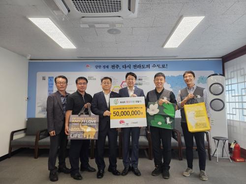À̳¯ Àü´Þ½ÄÀº À̸¶Æ® ÀüÁÖÁ¡ÀÌ Áö³ÇØ 8¿ù ü°áÇÑ ¡®Áö¿ª»ó»ý Çù·Â»ç¾÷ ¾÷¹«Çù¾à¡¯ÀÇ ÀÏȯÀ¸·Î ÀüÁÖÁö¿ª ÀüÅë½ÃÀå°ú ¼Ò»ó°øÀεéÀ» À§ÇÑ 5õ¸¸ ¿ø »ó´çÀÇ Àå¹Ù±¸´Ï¸¦ Áö¿øÅ°·Î °áÁ¤ÇÏ¸é¼ ¼º»çµÆ´Ù.