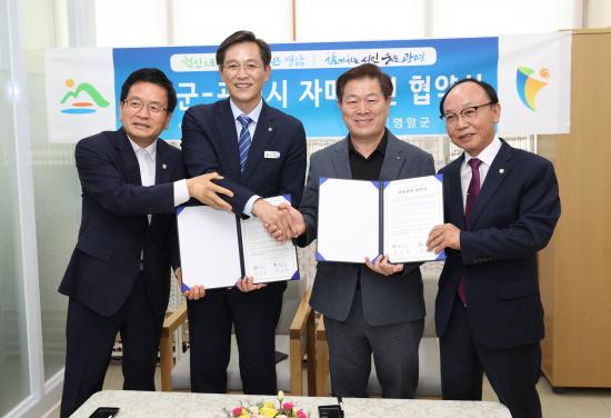 Æ÷·³Àå¿¡¼ ¿µ¾Ï±º°ú °æ±âµµ ±¤¸í½Ã(½ÃÀå ¹Ú½Â¿ø)´Â ¡®ÀڸŰῬ Çù¾à½Ä¡¯À» ¿°í, ³ó»ê¹° ÆÇ¸Å, °øµ¿Ã¼ Àڻ걸Ãà°ú Áö¿ª¼øÈ¯°æÁ¦ ¸ðµ¨ ±³·ù, ÀÚÄ¡ºÐ±Ç ¹× Áö¼Ó°¡´ÉÇÑ Áö¹æ ¹ßÀü µîÀ» ¹ÙÅÁÀ¸·Î ±³·ù¿Í Çù·ÂÀ» °ÈÇϱâ·Î ¾à¼ÓÇß´Ù.