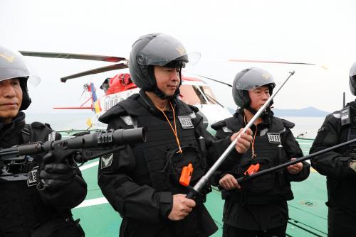 ÀÌ Ã»ÀåÀº À̳¯ °æºñÇÔÁ¤¿¡ Á÷Á¢ ½Â¼±ÇÏ¿© ÇöÀå ´Ü¼Ó¿¡ ÇÊ¿äÇÑ Áø¾Ð Àåºñ¸¦ ½ÇÁ¦ Âø¿ëÇϰí ÀÛµ¿µµ ÇØº¸¸é¼ ½Éµµ ÀÖ°Ô »ìÆìº¸´Â µî ºóÆ´¾ø´Â ºÒ¹ýÁ¶¾÷ Áß±¹¾î¼± ´Ü¼ÓÀ» À§ÇØ Æí¼ºµÈ ÇØ»óƯ¼ö±âµ¿´ëÀÇ ÀÛÀü Áغñ ż¼¸¦ Á¡°ËÇß´Ù.