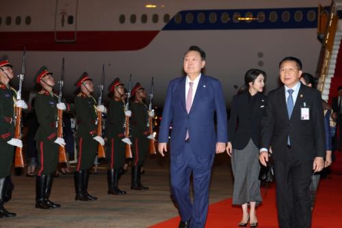 À± ´ëÅë·ÉÀº À̳¯ ¿ÀÈÄ ½Ì°¡Æ÷¸£ ±¹ºó ¹æ¹®À» ¸¶Ä¡°í ¶ó¿À½º ºñ¿£Æ¼¾È¿¡ µµÂøÇß´Ù. À± ´ëÅë·É°ú À̽ù٠ÃѸ®ÀÇ Ã¹ Á¤»óȸ´ã¿¡¼´Â ±¸Ã¼ÀûÀÎ Çö¾Èº¸´Ù