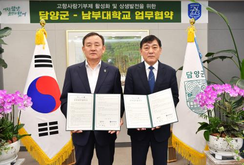 Çù¾à½Ä¿¡´Â Á¶Áعü ÃÑÀåÀ» ºñ·ÔÇÑ °ü°èÀÚµéÀÌ Âü¼®ÇßÀ¸¸ç, ³²ºÎ´ëÇб³´Â ¼Ò¼Ó ±³Á÷¿øÀ» ´ë»óÀ¸·Î °íÇâ»ç¶û±âºÎÁ¦¸¦ È«º¸ÇÏ°í ´ã¾ç±º¿¡¼´Â È«º¸È°µ¿À» Áö¿øÇϰڴٴ ³»¿ëÀÇ Çù¾àÀ» ÁøÇàÇß´Ù.