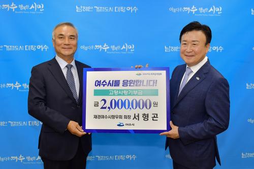 ¿©¼ö½Ã(½ÃÀå Á¤±â¸í)¿¡ µû¸£¸é Ⱦç¸é Ãâ½ÅÀÎ ¼ ȸÀåÀº Áö³ 15ÀÏ ¡®¿©¼ö½Ã¹ÎÀÇ ³¯¡¯ ±â³äÇà»ç Âü¼®¿¡ ¾Õ¼ ¹ÚÈ«½Ä Àç°æ¿©¼ö½ÃÇâ¿ìȸ »ç¹«ÃÑÀå°ú ½Ãû ½ÃÀå½ÇÀ» ¹æ¹®ÇØ Á¤±â¸í ½ÃÀå µîÀÌ Âü¼®ÇÑ °¡¿îµ¥ ±âºÎ±ÝÀ» Àü´ÞÇß´Ù.