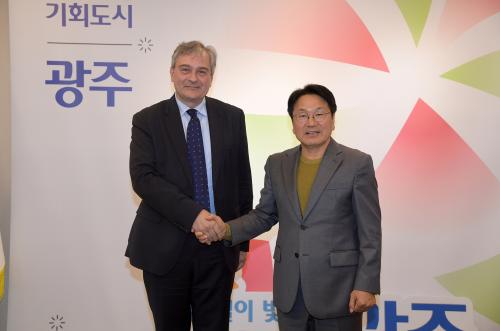 ° ½ÃÀåÀº ¡°´ëÇѹα¹ ¸À°ú ¸Ú, ÀÇÀÇ µµ½ÃÀÌÀÚ ³ëº§»óÀÇ µµ½ÃÀÎ ±¤ÁÖ¿¡ ¿À½Å °ÍÀ» ȯ¿µÇÑ´Ù¡±¸ç ¡°Å©·Î¾ÆÆ¼¾Æ´Â ÀÚ¿¬°æ°ü°ú ¹®ÈÀ¯»êÀ¸·Î ³Î¸® ¾Ë·ÁÁø ±¹°¡ÀÌ°í ±¤ÁÖ ¿ª½Ã À¯±¸ÇÑ ¿ª»ç¿Í ¾Æ½Ã¾Æ ¹®ÈÁ߽ɵµ½ÃÀÌ´Ù¡±¸ç ȯ´ëÇß´Ù.