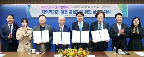 À̹ø Çù¾àÀº ³ó°¡¼Òµæ Áõ´ë¸¦ µµ¸ðÇϰí, ½Ã¹Î¿¡°Ô ¾ÈÀüÇÏ°í ½Å¼±ÇÑ Áö¿ª ¸Ô°Å¸®¸¦ Á¦°øÇÏ´Â Áö¿ª°æÁ¦ ¼±¼øÈ¯ÀÇ °¡Ä¡ ½ÇÇöÀ» ¸ñÇ¥·Î ÃßÁøµÈ °ÍÀ¸·Î, ¿ì¹ü±â ÀüÁÖ½ÃÀå°ú À̺´°ü ´ëÀÚÀκ´¿øÀå, ±èÁ¾ÁØ ÀüÁÖº´¿ø ÀÇ·á¿øÀå, ±èÁÖÇü ÀüÁִټ־Ƶ¿º´¿øÀå µî Áö¿ªº´¿øÀÇ ÁÖ¿ä ÀλçµéÀÌ Âü¼®Çß´Ù.
