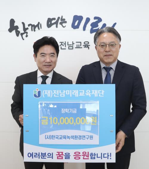 (Àç)Àü³²¹Ì·¡±³À°Àç´Ü À̱æÈÆ ¿øÀåÀº ¡°Áö¼ÓÀûÀ¸·Î Àü³² ±³À°¿¡ °ü½ÉÀ» °®°í ÀåÇбÝÀ» ±âÅ¹ÇØ Áֽô Çѱ¹±³À°³ì»öȯ°æ¿¬±¸¿ø¿¡ Áø½ÉÀ¸·Î °¨»çµå¸°´Ù.¡±¸ç ¡°Àü³² ÇлýµéÀÇ ¹«ÇÑÇÑ °¡´É¼ºÀ» Áö¿øÇϰí ÀÀ¿øÇÏ´Â µ¥ ¼ÒÁßÈ÷ »ç¿ëÇϰڴٰí.¡±°í ¸»Çß´Ù.