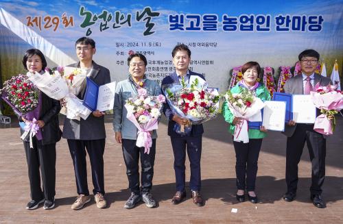 °±âÁ¤ ½ÃÀåÀº À̳¯ ±¤ÁÖ ³ó¾÷ ¹ßÀü¿¡ Çå½ÅÇÑ Àü±¹³ó¹ÎȸÃÑ¿¬¸Í ±¤Áֽóó¹Îȸ ±è¿¬¿Á, (»ç)Çѱ¹³ó¾÷°æ¿µÀα¤ÁÖ±¤¿ª½Ã¿¬ÇÕȸ ±èÇöö, (»ç)Çѱ¹³óÃÌÁöµµÀÚ±¤ÁÖ±¤¿ª½Ã¿¬ÇÕȸ ¹®¿Ï½Ä, (»ç)Çѱ¹»ýȰ°³¼±È¸±¤Áֽÿ¬ÇÕȸ ¹Ú°æ¼÷, (»ç)Çѱ¹ 4-H ±¤ÁÖ±¤¿ª½Ãº»ºÎ Á¤±ÝÁÖ ¾¾ µî ³ó¾÷ÀÎ 5¸í¿¡°Ô ǥâÀåÀ» ¼ö¿©Çß´Ù.