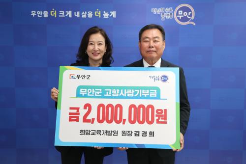 Èñ¸Á±³À°°³¹ß¿ø ±è°æÈñ ¿øÀåÀº 2³â ¿¬¼Ó ¹«¾È±º °íÇâ»ç¶û±âºÎÁ¦¿¡ Âü¿©ÇÔÀ¸·Î½á ¿ÃÇØ·Î ½ÃÇà 2³â Â÷¸¦ ¸ÂÀÌÇÑ °íÇâ»ç¶û±âºÎÁ¦°¡ ´õ¿í Ȱ¼ºÈÇϰí Áö¼Ó °¡´ÉÇÑ ¹ßÀü µ¿·ÂÀ» È®º¸ÇÏ´Â µ¥ ÈûÀ» º¸ÅÉ´Ù.