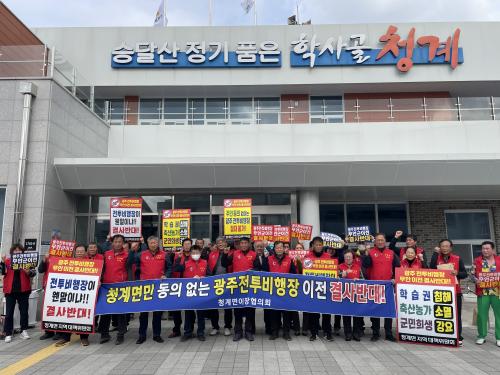 ÇÑÆí, û°è¸é ÀÌÀåÇùÀÇȸ´Â ±¤ÁÖ ÀüÅõºñÇàÀåÀÇ Áö¿ª¹ßÀü ÀúÇØ ÇàÀ§¸¦ ¾Ë¸®°í ¿ì¸® Áö¿ªÀÇ ¹Ì·¡¸¦ Áö۱â À§ÇØ Áö¼ÓÀûÀÎ ¹Ý´ë Ȱµ¿À» ÆîÄ¥ °èȹÀÌ´Ù.
