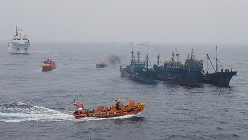 °üÇÒ EEZ³»¿¡ °æºñÇÔÁ¤ 3ô, Ç×°ø±â 1´ë¸¦ ¹èÄ¡ÇØ ¼øÂûÀ» °ÈÇÑ ¼ÇØÇذæÀº ¿Ü±¹¾î¼± ÀÔ¿ªÁ¤º¸ µîÀ» Åä´ë·Î ºÒ¹ýÁ¶¾÷ ¿©ºÎ¸¦ »çÀü¿¡ ÆÄ¾ÇÇØ ¼±Á¦Àû ´Ü¼ÓÀ» Àü°³ÇÑ´Ù´Â ¹æÄ§ÀÌ´Ù.